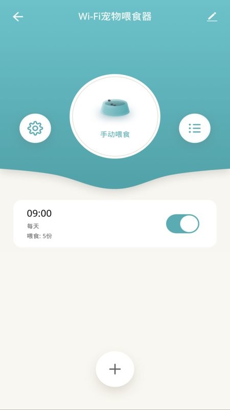 在喂食界面可以查看喂食器的食物余量、查看喂食器电池状态、设定定时喂食、手动喂食和查看喂食与异常记录。