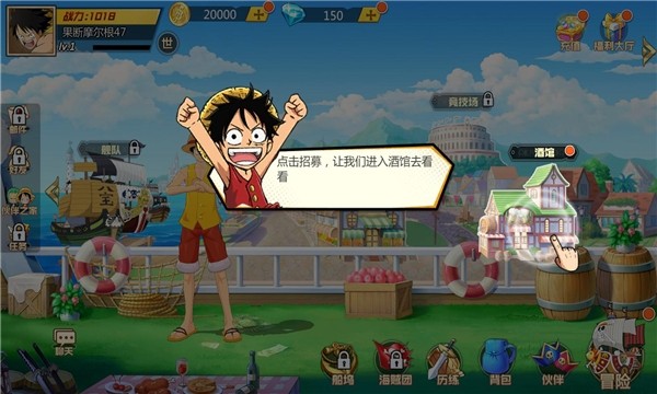 大型角色扮演手游震撼来袭!游戏中,我们将扮演征服海洋的强者,和路飞一起环游世界。探索、航行、战斗、占领、历练,多种核心玩法等你尝试。除此以外,还有各式隐藏任务、酒馆、海底监狱,以及等待结识的精英伙伴,众多彩蛋都会让你的航海旅程惊喜不断。