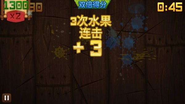 会不断出现水果,时间为一分半。在这一分半内谁因连击而切出的分数越高,谁就是胜利者。游戏不会因水果的掉落而失败。