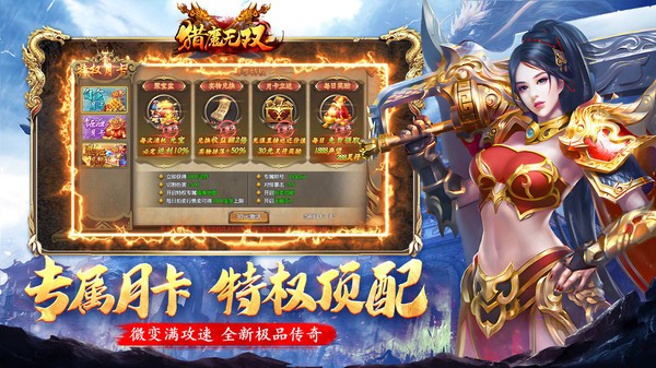 激活专属特权月卡,每日打卡领取海量灵符和声望。打金宝库大开放,金条兑换高倍回收,元宝消耗再返利,升级加速快人一步。同时额外给提供镜像地图,双倍速刷怪,集齐套装分分钟!