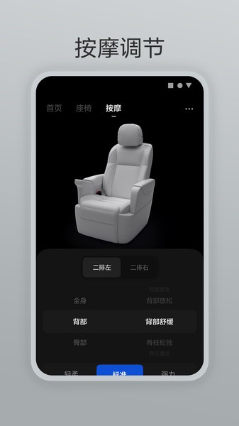 理想遥控器通过蓝牙连接车辆后,即可轻松进行车内后排功能控制,比如开关侧滑门、后排车窗、空调、座椅、按摩等!