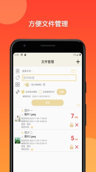 时间锁定器是一款小巧实用的APP,你可以将密码、手机里的文件或APP进行锁定并设定期限,锁定后无法查看或访问,到期后才能将其解锁。