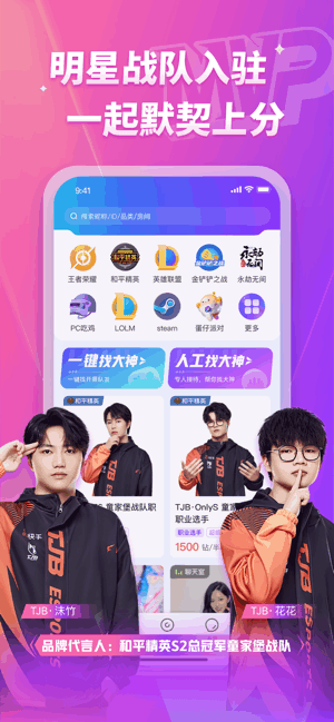 众多游戏电竞大神,覆盖众多热门游戏(英雄联盟LOL、英雄联盟手游、王者荣耀、和平精英、永劫无间、PC版吃鸡等各类主流游戏),和默契队友一起上分,开黑不用等。