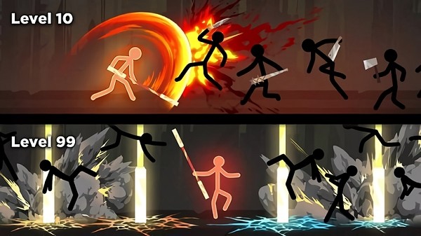 - 提升你的火柴人:训练你的英雄,升级他们的属性,并解锁强大的技能来主宰战场。