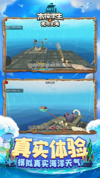 木筏求生4无尽之海手游是全新打造的模拟求生题材类型游戏,画风画面高清细腻,加入全新的无尽之海玩法内容,还模拟真实天气环境,还原逼真的荒岛求生过程,需要玩家生存建造,抵御外敌,努力存活到最后!