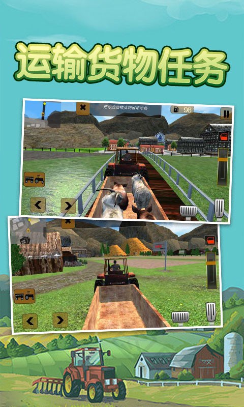 拖拉机卡车模拟3d版是一款集农场经营与拖拉机驾驶于一身的最新式模拟休闲游戏。在这里你可以远离城市的喧嚣,自由的经营你的农场,你需要播种、收割、运输。你还要知道装载货物的时候,驾驶拖拉机并非易事,证明你拖拉机运输技巧的时候到了。立即感受真实的模拟农场载具驾驶,完成一系列仿真的农场工作吧!