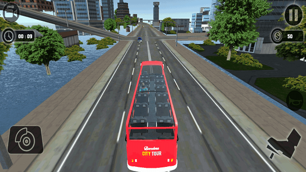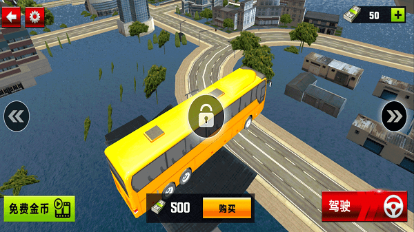驾驶观光巴士,驾驶方向盘,系好安全带,启动巴士引擎,在逼真的城市环境中乘坐长途客车惊险刺激的水上冲浪之旅。