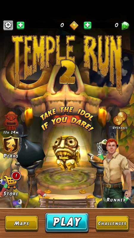temple run2安卓英文版即神庙逃亡2国际服,是一款英文版的神庙逃亡跑酷游戏,画面精美复古,玩法简单,延续前作的经典设定,打造多样的关卡挑战,通过指尖触屏点击屏幕,控制角色不断前进,解锁更多场景,灵活躲避跨越各种障碍,还可以借助道具助力闯关!