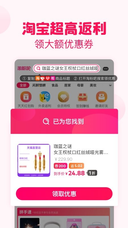 怎么购物才省钱?复制宝贝标题到淘粉吧,自动查询商家隐藏优惠券,下单再领超高返利!