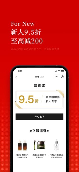 中免日上是中免日上互联科技有限公司(由中国免税品集团与日上免税行携手创立)打造的品牌零售电商平台(以下称"平台")。平台商品涵盖护肤、彩妆、香水、洋酒、时尚精品等众多品类,积累了大批忠实优质用户。