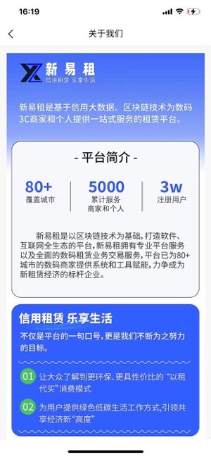 新易租App是一款一站式信用租赁服务平台,平台秉持“为客户创效益,为行业谋发展”的理念,帮助全国手机门店商家提高成交率,带来更多利润。依托平台,结合线上与线下,为用户带来更好的体验和优质的服务,让租户省心、安心、放心!