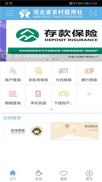 河北省农村信用社手机银行采用了先进的安全保障体系,数据全程加密、密码超限保护、登录超时控制、转账额度自主设定,为客户提供登录密码、手机银行交易密码多重保护,并通过限定手机设备及手机号码等机制确保资金交易的安全可靠。
