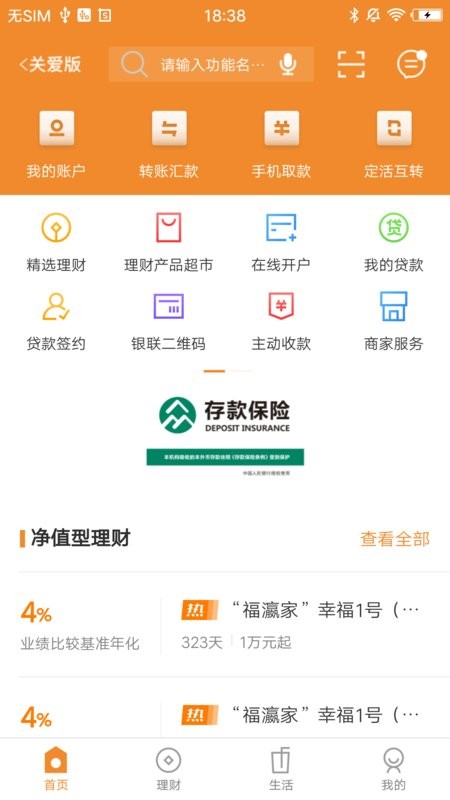 银行公告、优惠快讯、理财资讯、网点查询、安全提示、联系我们、意见反馈等。