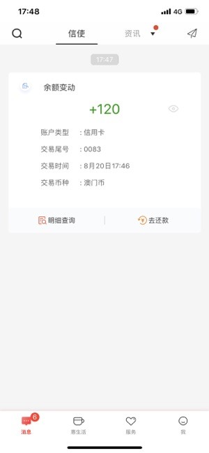 5、信息推送服务:工银信使助您及时掌握账户变动,更有消息推送服务通知您不可错过的行业变动及最新产品。