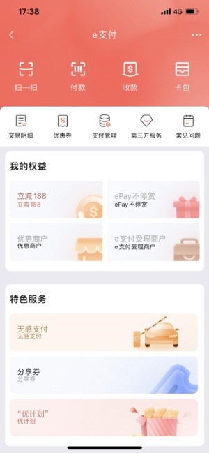 全面管理您的支付,整合限额设置、安全中心等功能,我的权益、特色服务、支付快讯满足您更多支付需求。