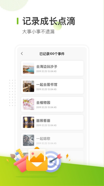 【成长里程碑】可记录宝宝成长过程中的重要事件,学会爬,学会坐,学会走路,学会叫爸爸妈妈爷爷奶奶,每一次成长都是美好瞬间。