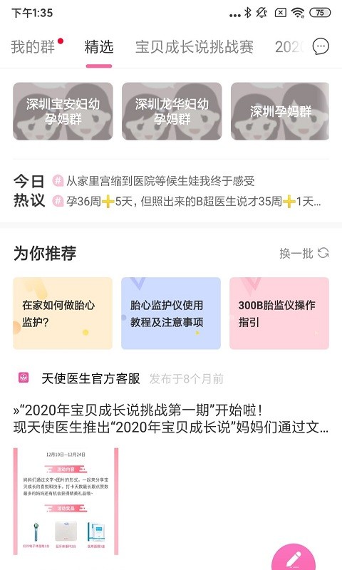 天使医生是一款专为妈妈们设计的备孕、怀孕健康工具,覆盖了从孕期到育儿的全过程,功能非常强大。它不仅提供胎心监护和居家健康管理,还能连接硬件设备实时监测胎心、体温、血压等数据,并上传云端保存,让准妈妈们足不出户就能享受专业医生的远程服务。