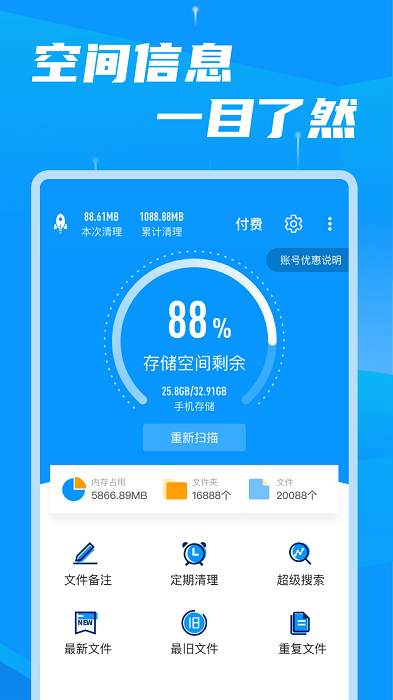 存储空间清理大师软件--极速清理,更小更安全的手机清理工具。
