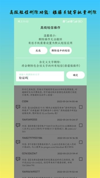 ③ 批量短信清理,根据关键字一键删除垃圾短信