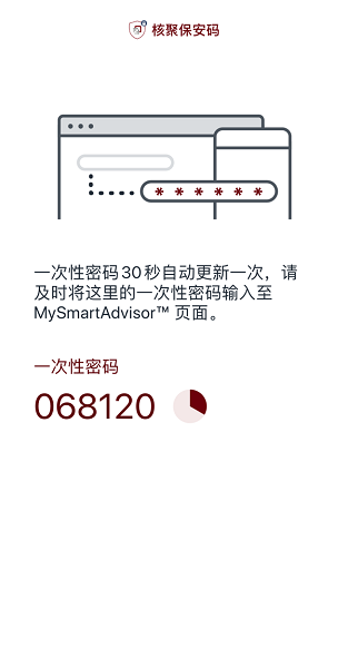 请您将核聚保安码app产生的一-次性密码输入mysmartadvisor进行双重认证。