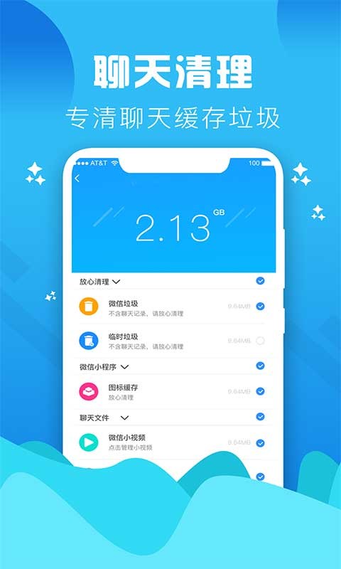 清理聊天缓存垃圾、表情图标、短视频、临时文件、让聊天更加顺畅