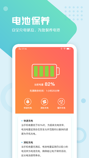 智能省电,全面优化手机电量,延长手机电池电量使用时长。