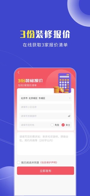 业主发布装修需求,匹配正规装修公司,专业设计团队,合理把控装修预算不超标。