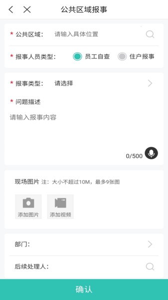 设备设施报修、房间报修、公共区域报事、报事报修等
