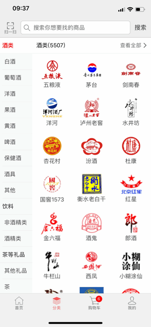 2、可以通过酒的品类,快速搜索相同类型的酒产品;