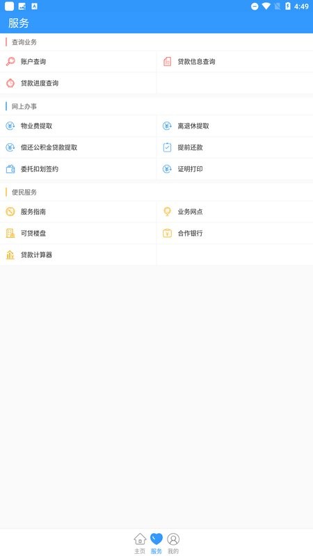 贷款计算器、网点查询、合作楼盘。