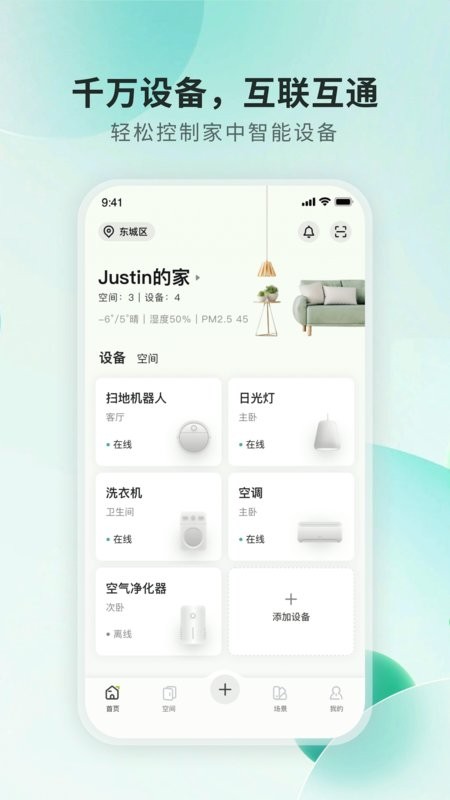 创建个性空间,设置智能场景,体验多品牌多品类智能设备的轻松联动;