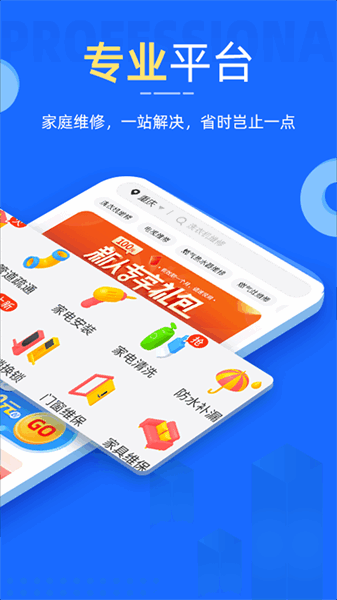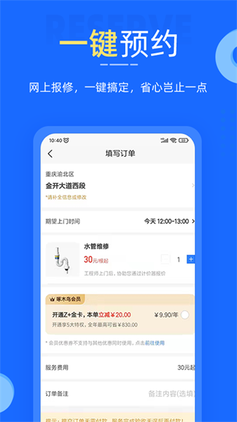 用户在APP上进行预约,全国覆盖2200+,附近师傅极速上门;