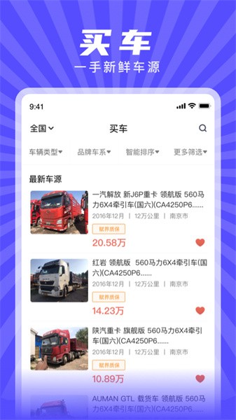赋界二手商用车app是用来帮助用户们在这里寻找各种二手商用车辆的手机软件,在这里用户们能够找到各种各样的二手卡车货车进行查看选购,让自己能够快速的购买到自己想要的车辆,超级的好用。