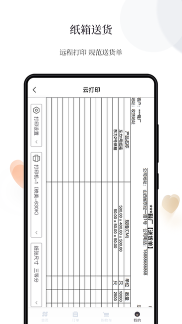 2、移动办公:随时随地远程打印纸质送货单,一键转发电子送货单。