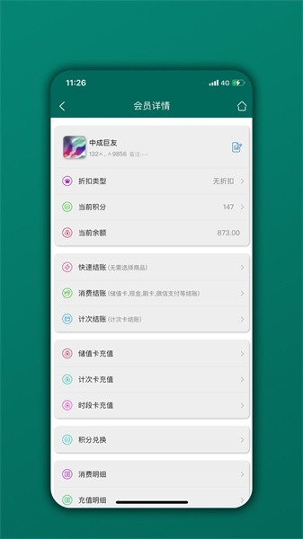 余额查询,余次查询,积分查询,消费查询,充值查询,领取优惠,查收通知,自助预约...