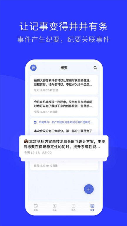- 添加纪要:可为事件添加纪要,纪要下支持创建待办。