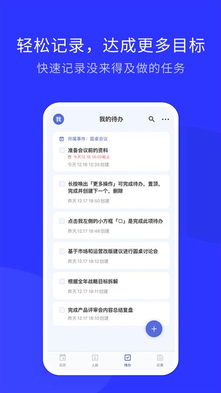 - 一键创建待办,工作、学习、生活中还没来得及做的任务,无一遗漏。