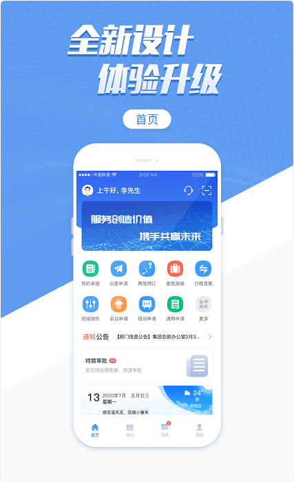 语音导航,可通过语音打开应用;语音填单,通过语音交互完成出差申请单、个人借款单的填写。