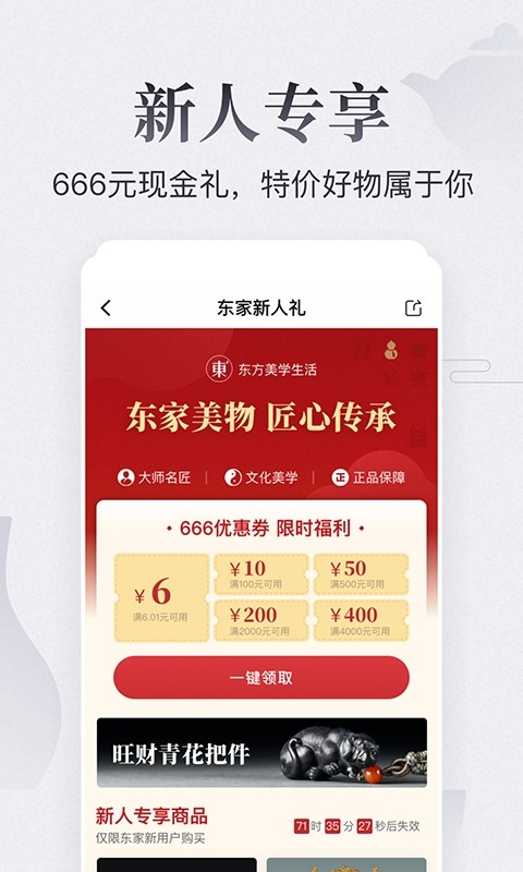 东家官方版是一款提供电商购物的应用平台,杭盖各种各样的产品,包括茶叶茶器、珠宝玉石、文化艺术品等,随你选购,还支持在线拍卖交易,提供众筹、火拼等服务,满足不用用户的需求,轻松买到想要的艺术产品,享受购物的乐趣!