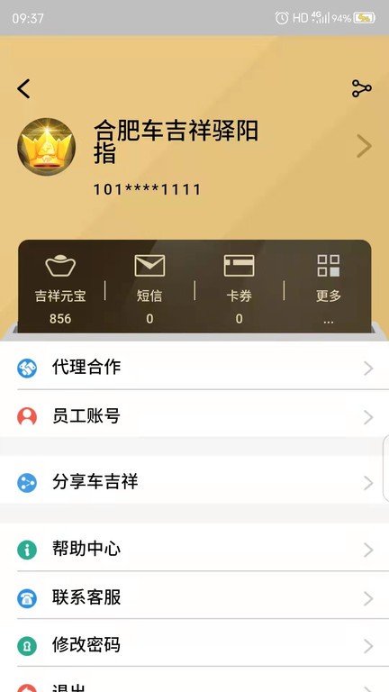 在我的页面,查看门店信息、预约中心、查车中心、员工账号等