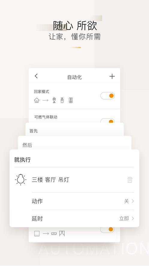用户可以开启回家模式,让你在家里能够得到放松,舒适的亮度让你更好的生活;