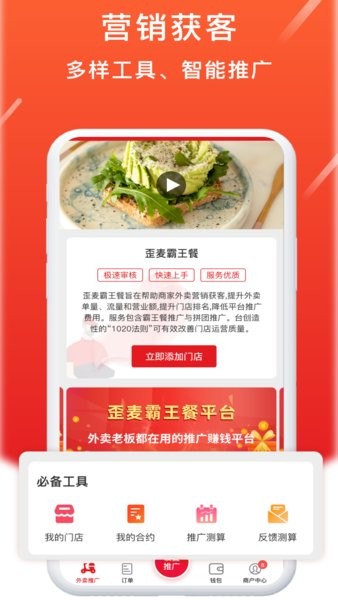 歪麦商户平台手机版为外卖商家带来更多的推广服务,让商家经营更加轻松, 通过软件可以随时获得非常多的外卖营销工具,让用户获客更加方便,海量的商家都在这里进行推广,快来试试吧!