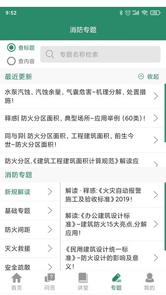 2、包括消防规范网、消防大讲堂、消防专题、消防问答、消防博客、消防头条等专业技术频道。