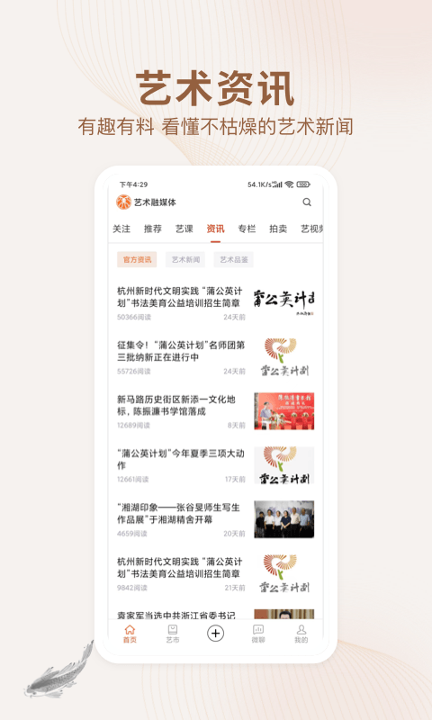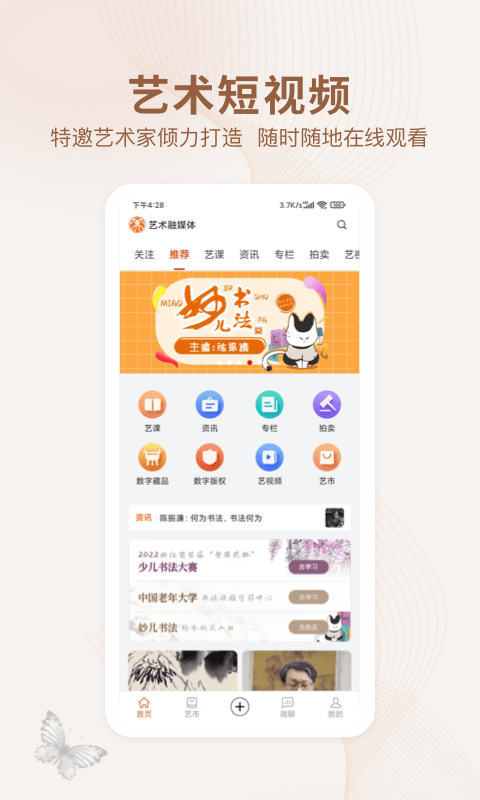 数字媒体艺术融媒体为用户带来更多的艺术品信息,还有许多的艺术资讯可以在这里了解,海量的艺术相关的短视频也可以在这里进行观看,还有名家直播帮助用户学习艺术更加轻松。
