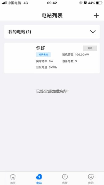 在电站列表中可以看拿到每个电站的发电情况,当前功率。