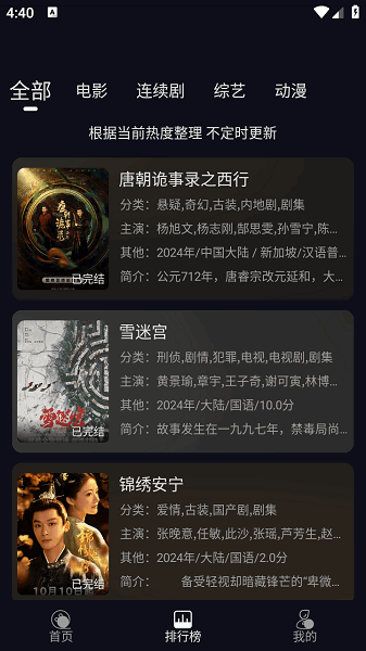 -- 包括热门电影、经典电视剧、综艺娱乐、动漫等多个分类,用户可以根据自己的喜好进行选择;