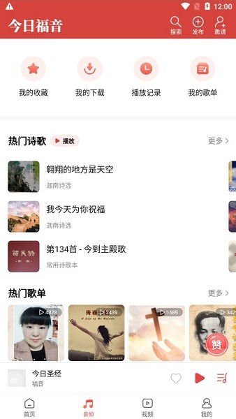 今日福音app是由原来的的九酷福音升级改名而来的音视频频阅读软件!主要提供圣经、赞美诗歌、音频讲道等资源内容,不间断更新,精选推荐,热门各歌单视频随你观看,一键收听,阅读熟悉,在线下载、收藏、分享,十分方便!