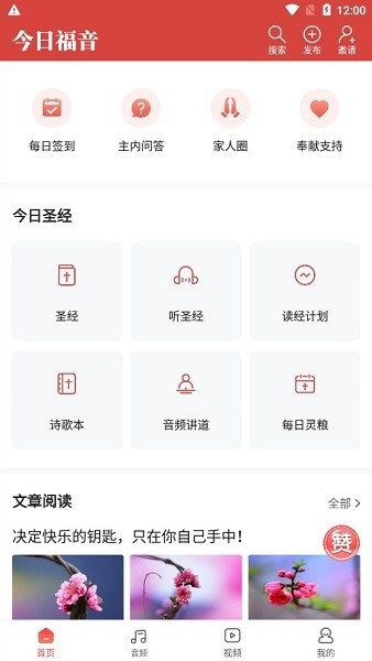 今日福音app是九酷福音升级而来的一款音视频阅读软件,主要提供圣经、赞美诗歌、音频讲道等资源。用户可以随时在线阅读、收听、收藏和分享内容,非常方便。软件功能丰富,包括实时搜索章节、丰富的音频资源库、牧师讲道视频、生活相关的文章以及各种分类的福音电影和神学课程。此外,还有动态任务模块,用户可以关注他人、交流分享,甚至参与祷告和见证。