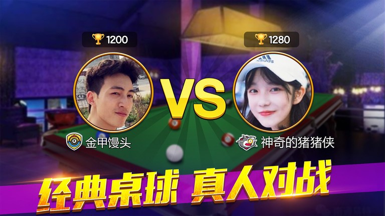 PVP真人实时匹配、8人联赛随机分组,还原现实桌球玩法,简单流畅的操作,酷炫的动画特效给你绝佳的游戏体验。