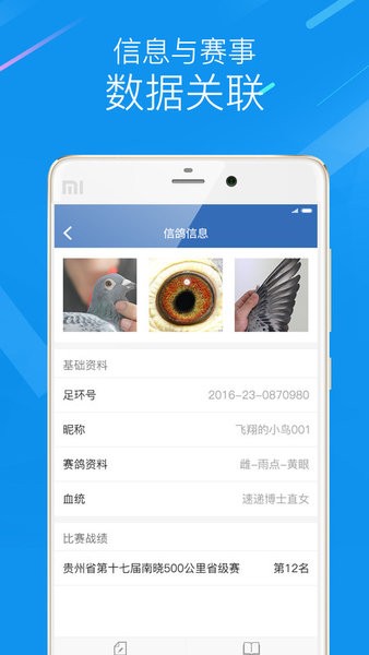 3.足环查询方便快捷,输入足环号,查询赛鸽历史成绩。